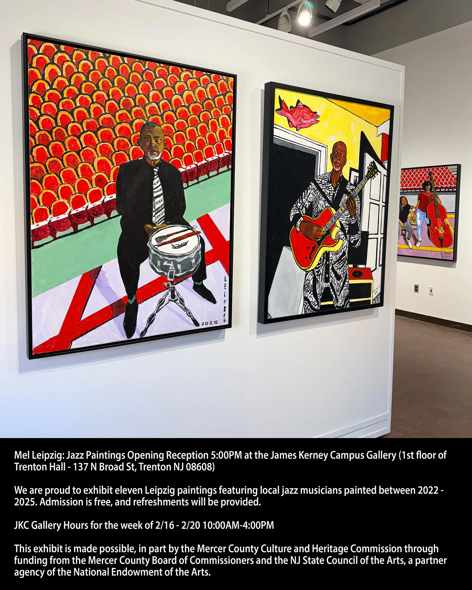 Mel Leipzig: Jazz Paintings Opening Reception 5:00PM at the James Kerney Campus Gallery (1st floor of Trenton Hall – 137 N Broad St, Trenton NJ 08608)